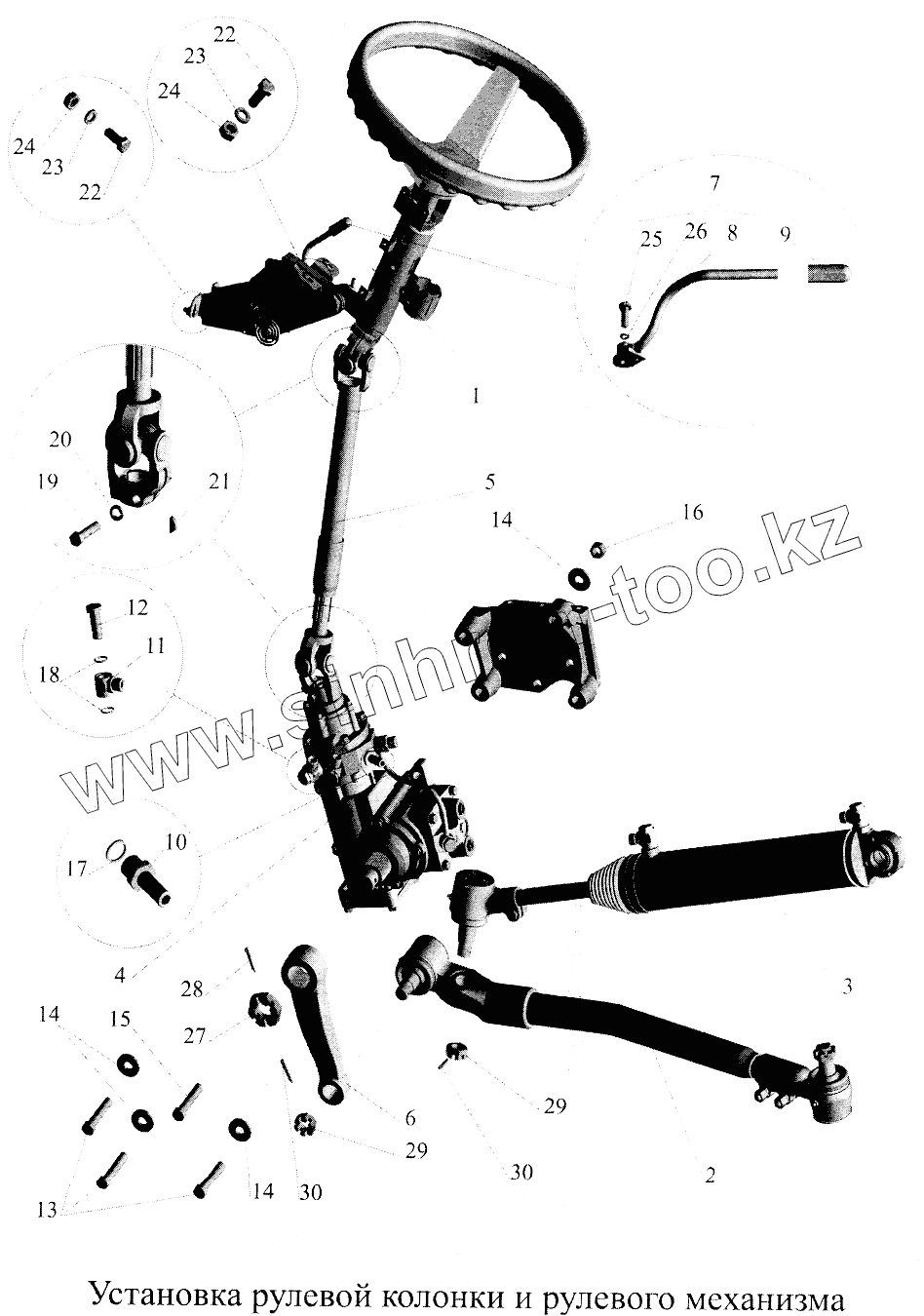 Каталог запасных частей к технике: МАЗ-5516А5. Установка рулевой колонки и рулевого механизма