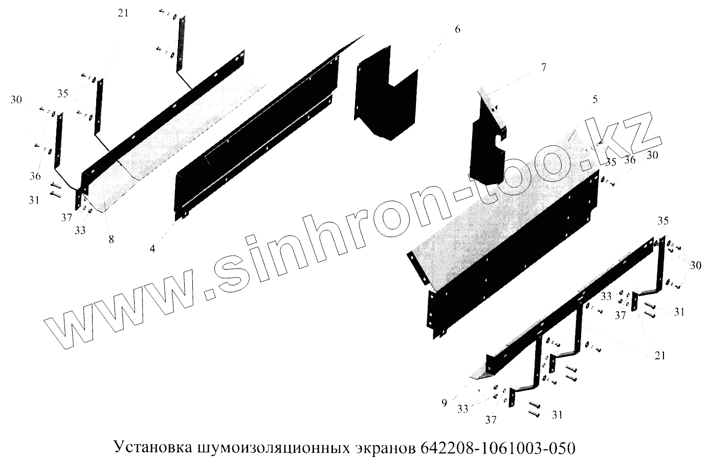 Каталог запасных частей к технике: МАЗ-5516А5. Установка шумоизоляционных экранов 647208-1061003