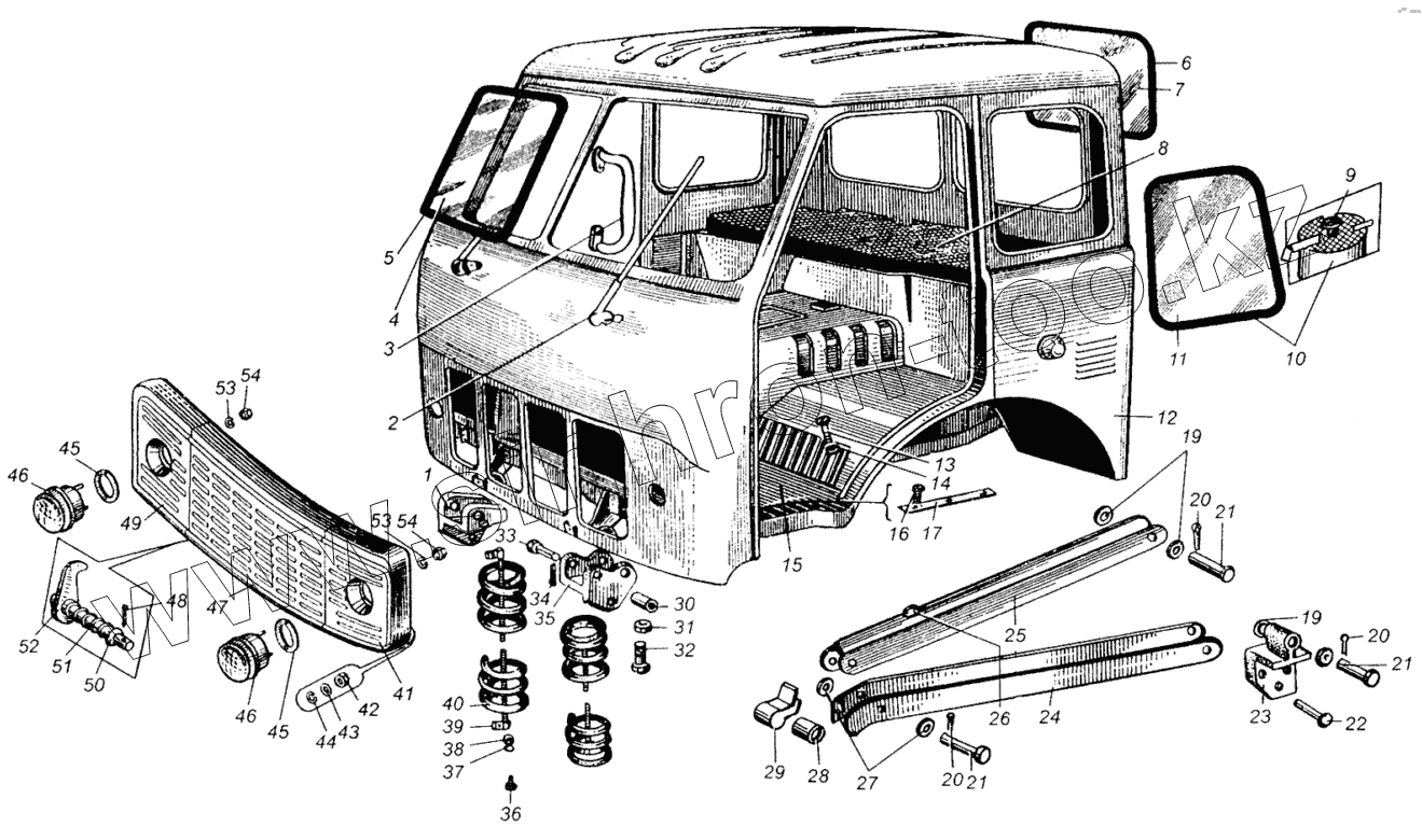 Каталог запасных частей к технике: МАЗ-5549. Каркас кабины и его крепление