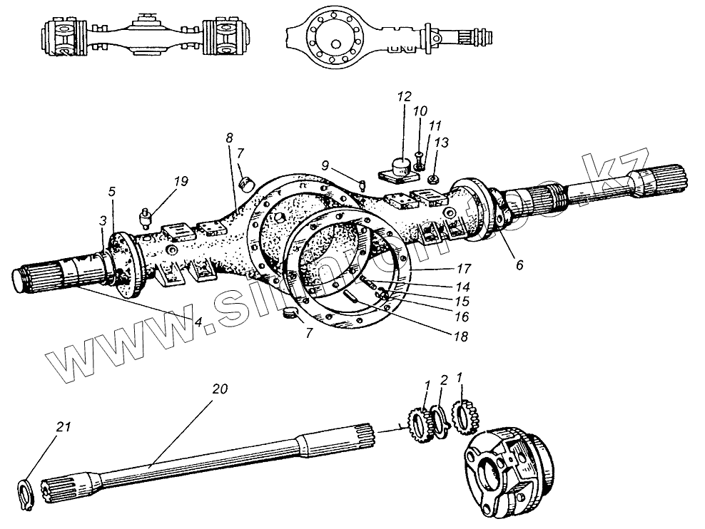 Каталог запасных частей к технике: МАЗ-5549. Картер заднего моста с полуосями и кожухами