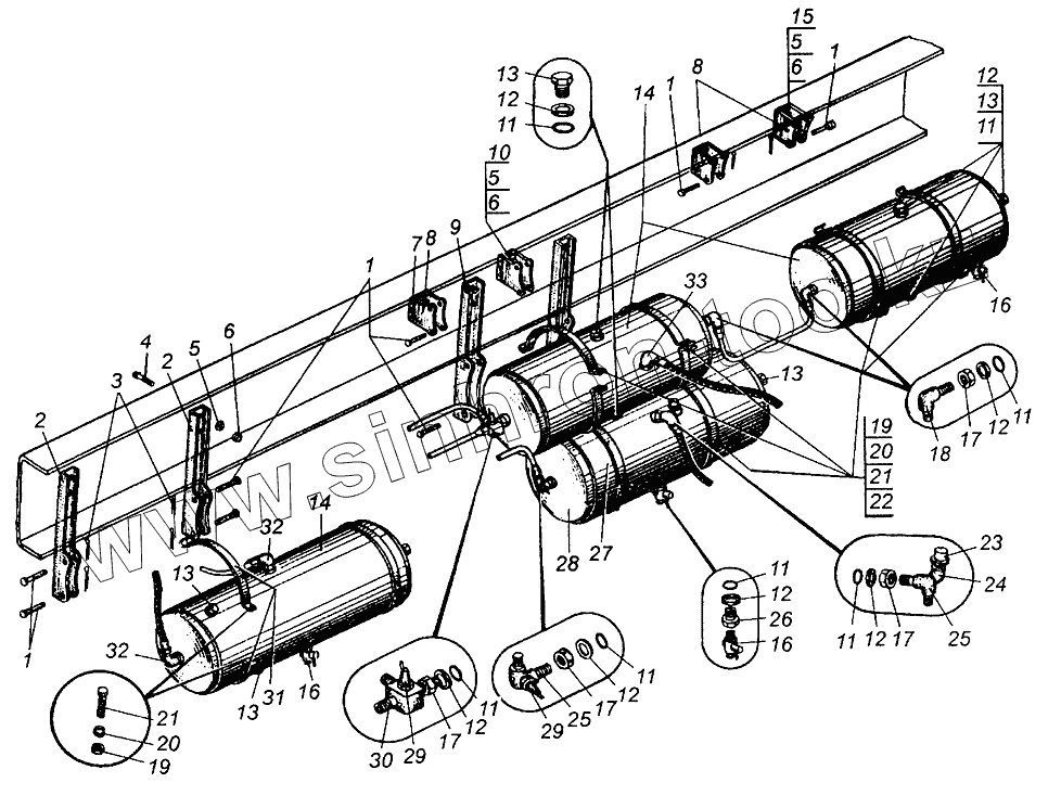 Каталог запасных частей к технике: МАЗ-5549. Крепление воздушных баллонов МАЗ-509А