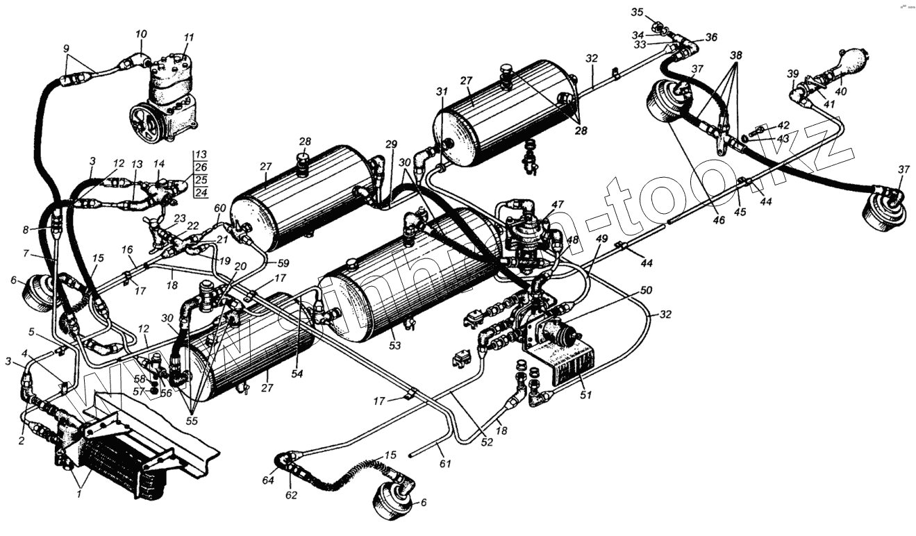 Каталог запасных частей к технике: МАЗ-5549. Привод пневматический тормозов МАЗ-509А