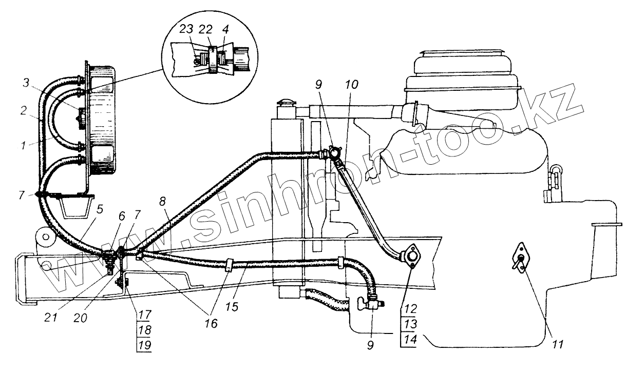 Каталог запасных частей к технике: МАЗ-5549. Схема вентиляции и отопления кабины