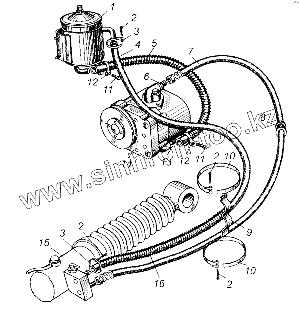Каталог запасных частей к технике: МАЗ-5549. Трубопроводы гидроусилителя рулевого управления