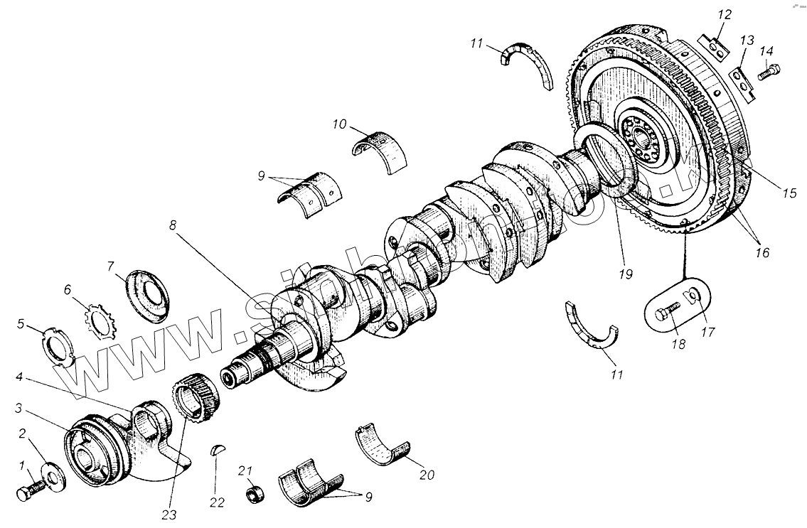 Каталог запасных частей к технике: МАЗ-5549. Вал коленчатый и маховик ЯМЗ-238