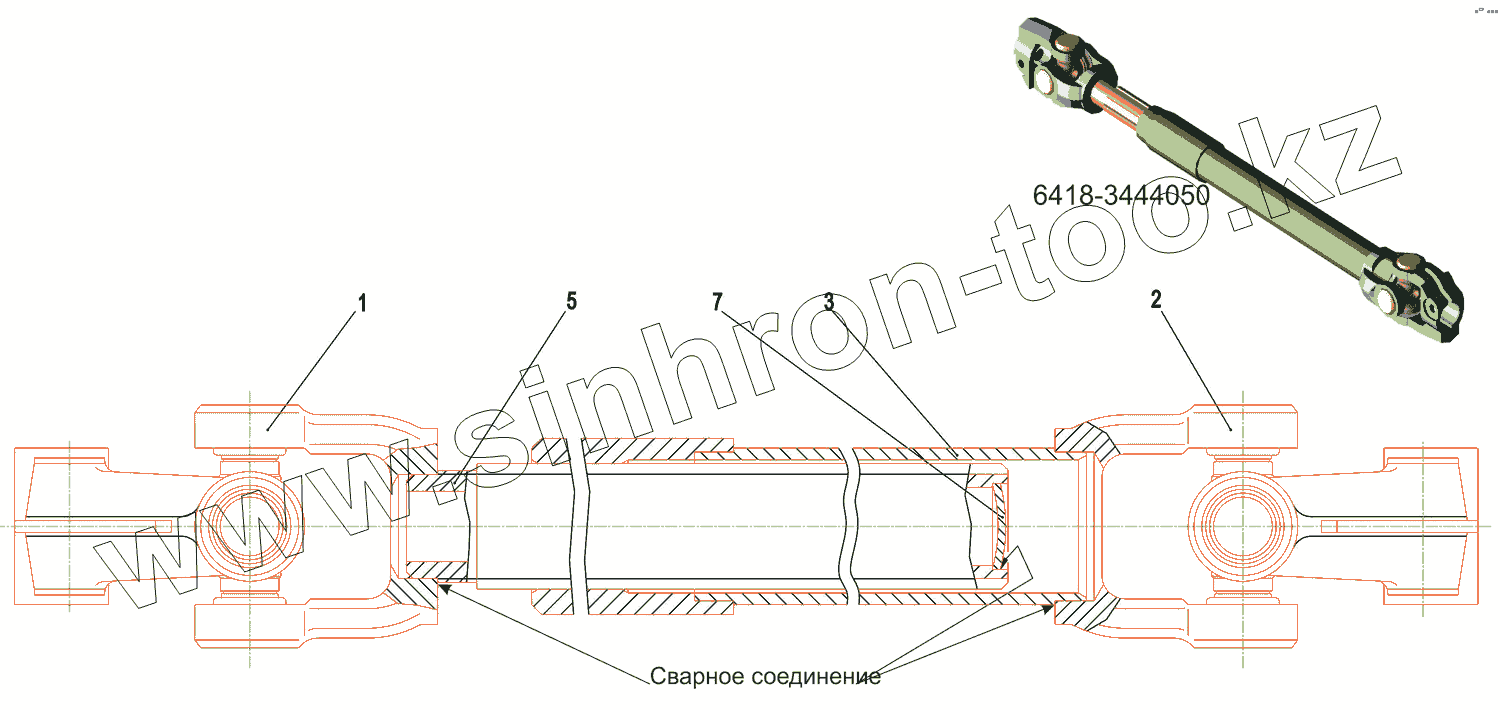 Каталог запасных частей к технике: МАЗ-5550V3 (V5). Кардан нижний 6418-3444050