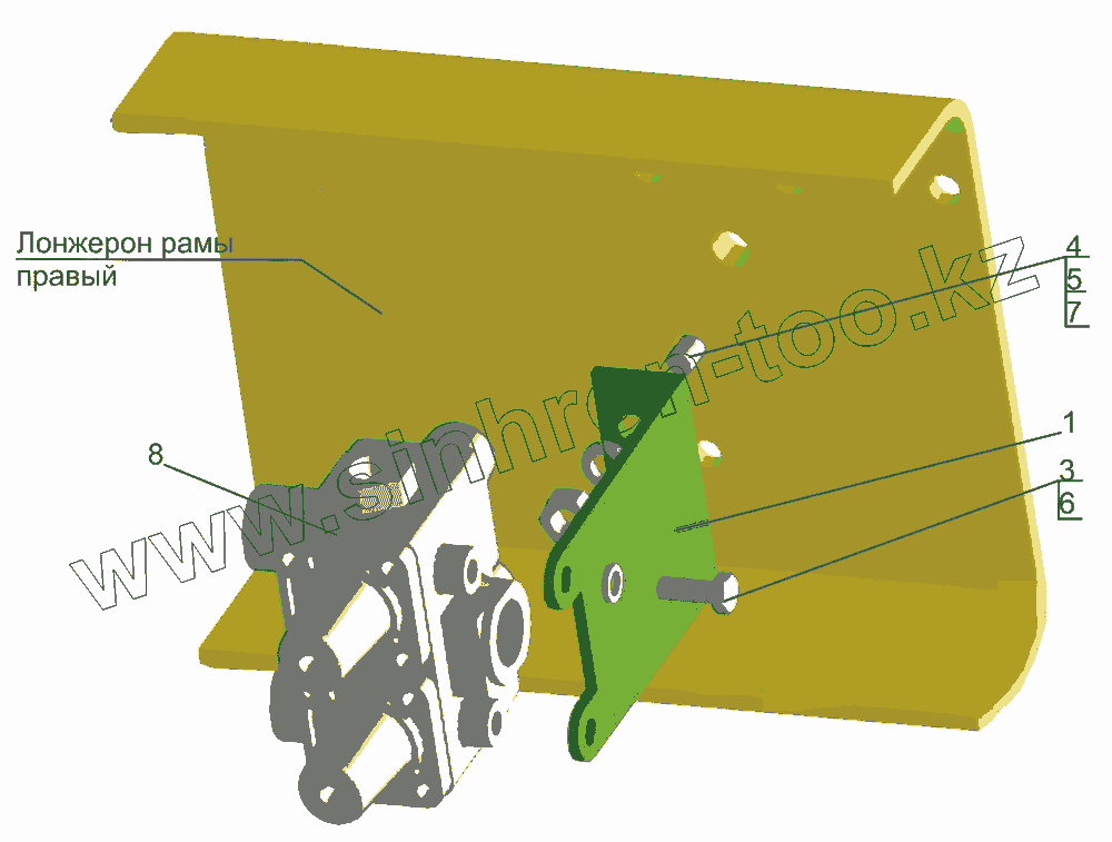 Каталог запасных частей к технике: МАЗ-5550V3 (V5). Крепление клапана четырехконтурного 438041-3515002