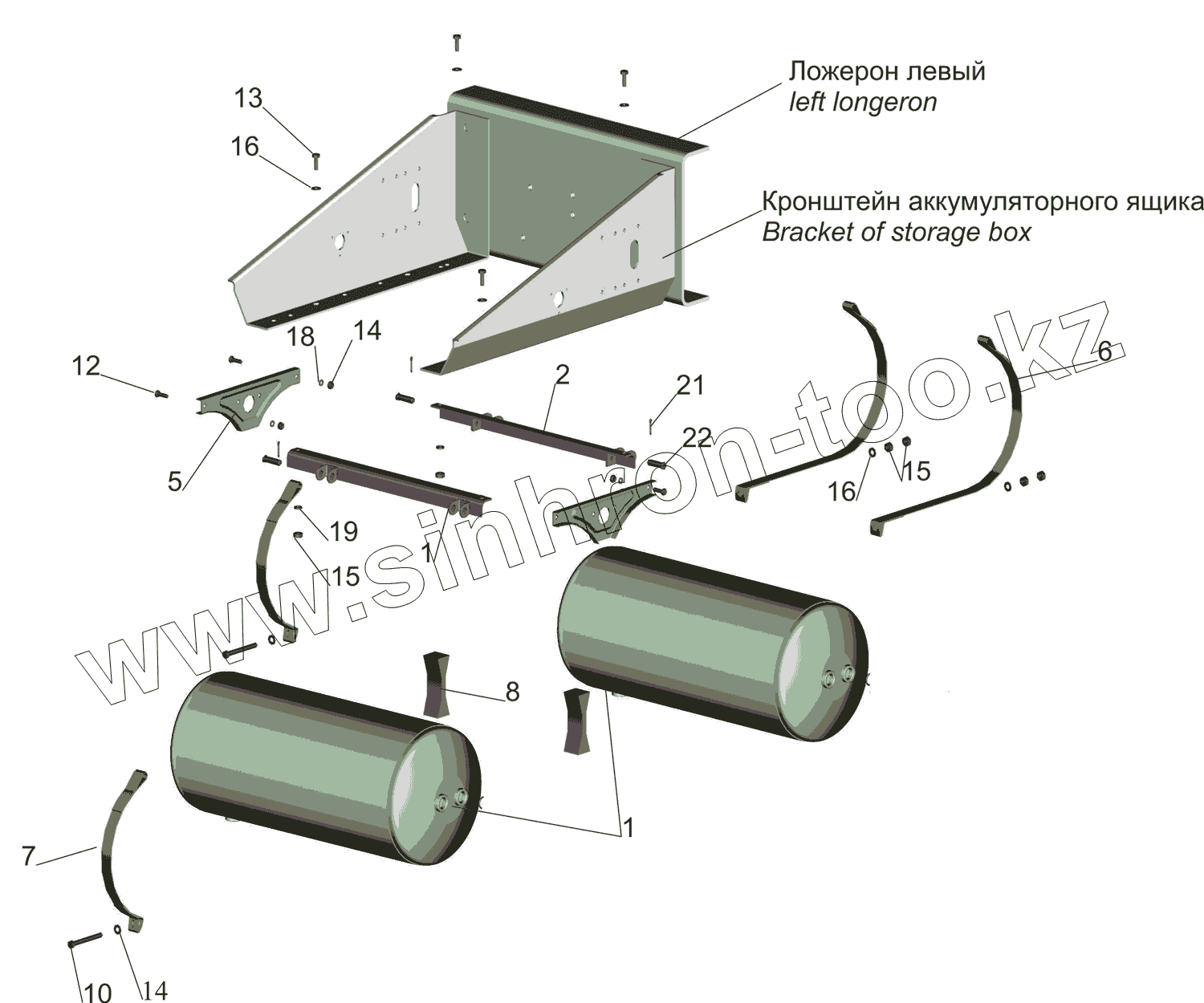 Каталог запасных частей к технике: МАЗ-5550V3 (V5). Крепление ресиверов 5550V3-3513004-000