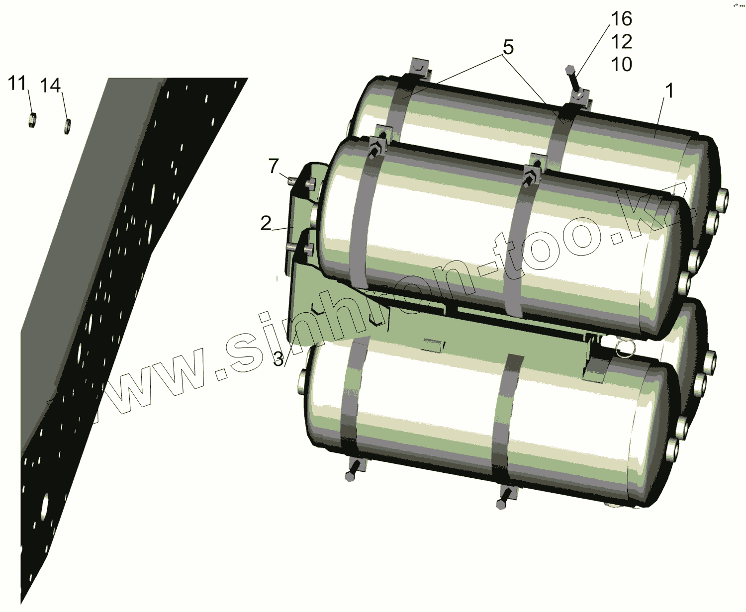 Каталог запасных частей к технике: МАЗ-5550V3 (V5). Крепление ресиверов 643020-3513005-010