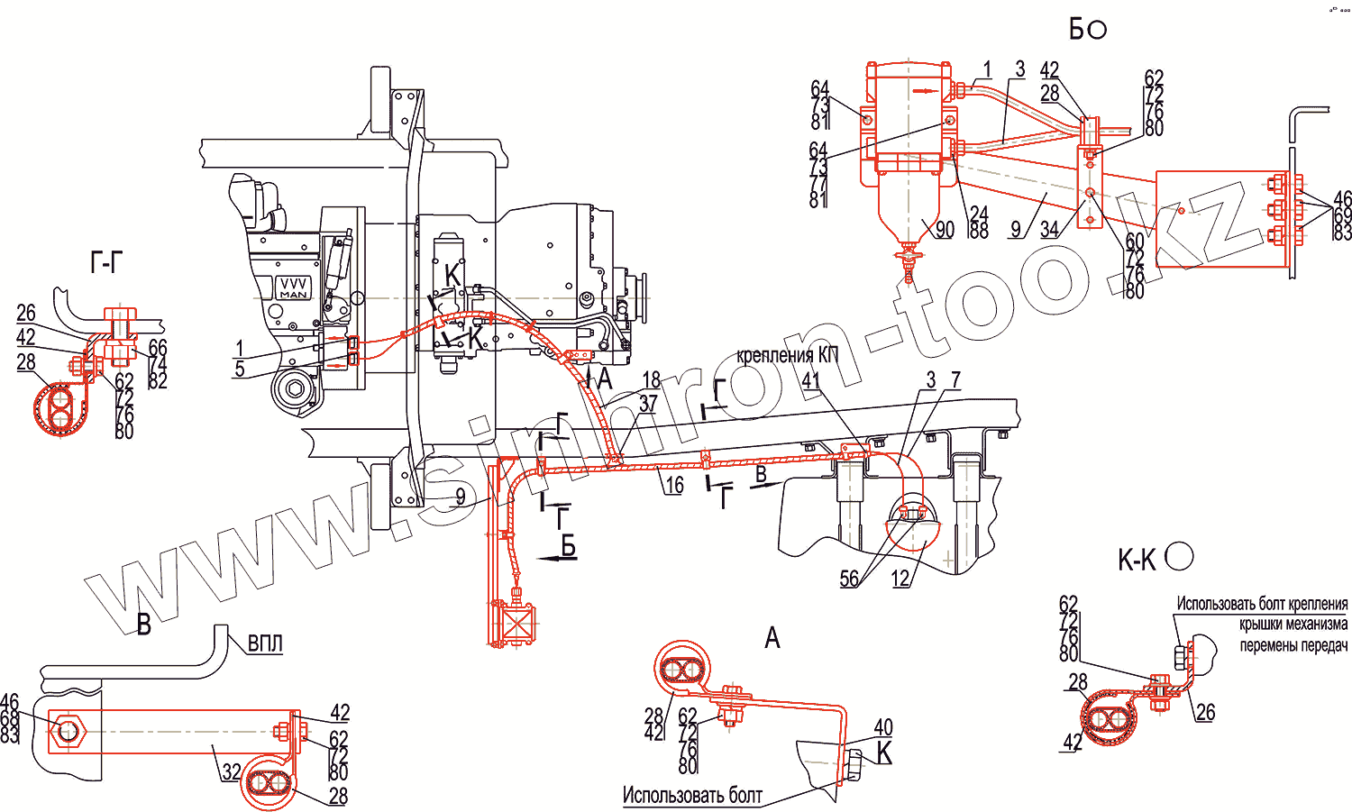 Каталог запасных частей к технике: МАЗ-5550V3 (V5). Крепление топливопроводов 5340V4-1104002-010
