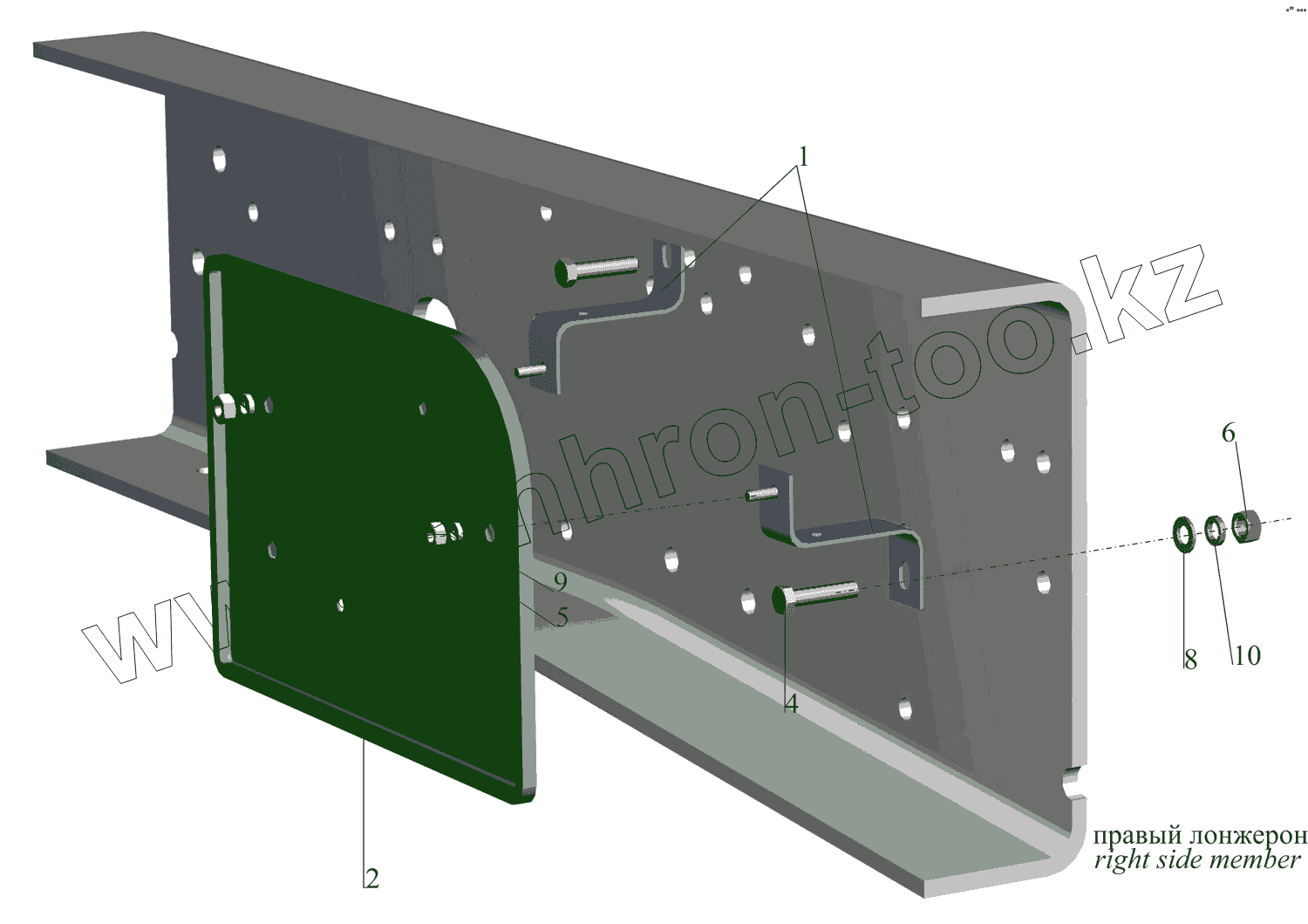 Каталог запасных частей к технике: МАЗ-5550V3 (V5). Крепление защитного экрана 6501В5-3506040-000