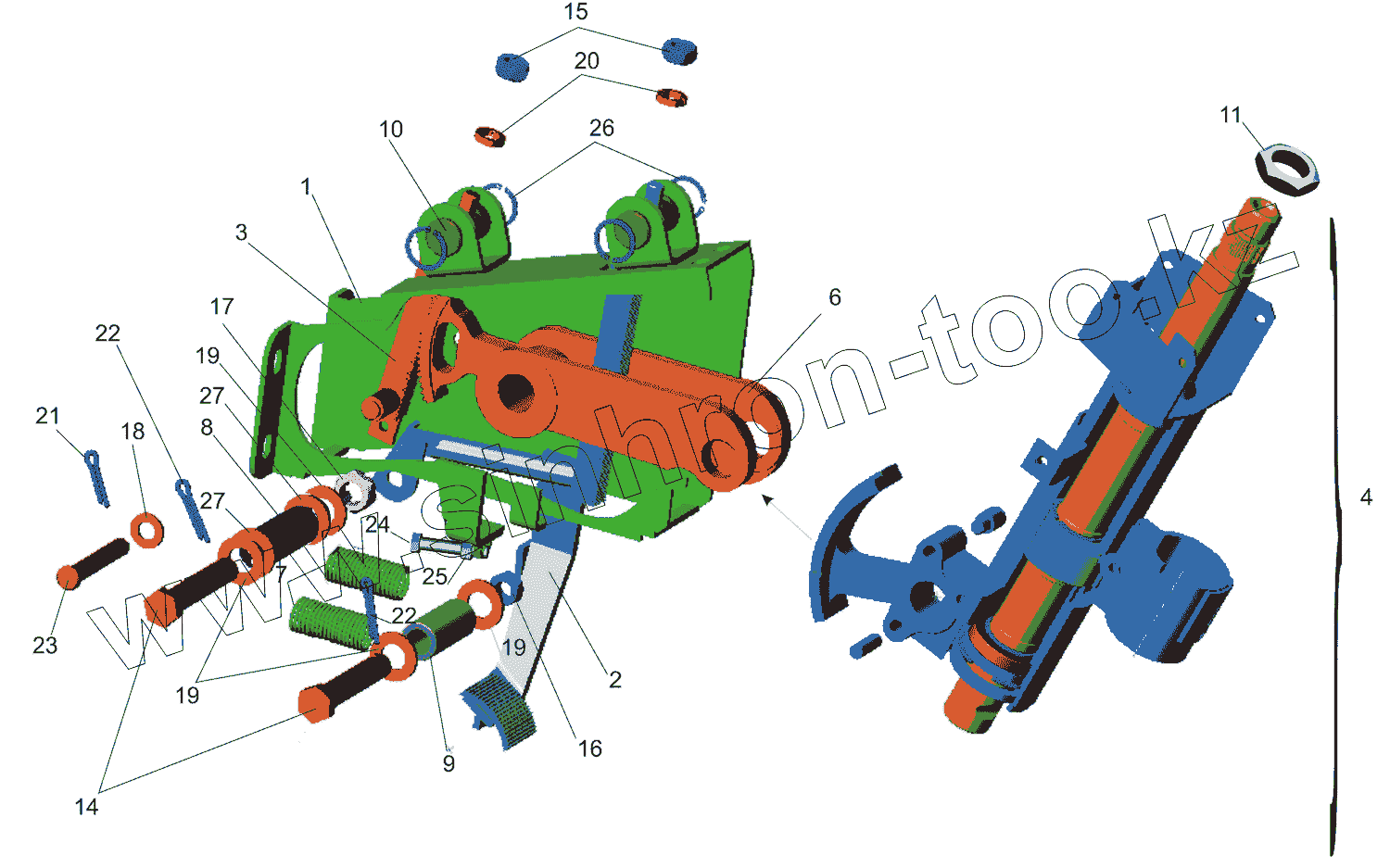 Каталог запасных частей к технике: МАЗ-5550V3 (V5). Кронштейн с колонкой 5440-3403008