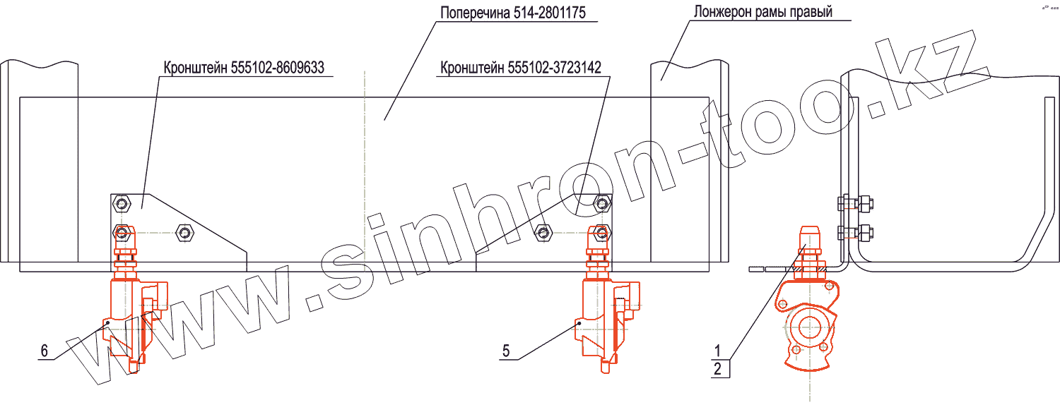 Каталог запасных частей к технике: МАЗ-5550V3 (V5). Пневмовывод к прицепу 5550V5-3521004-000