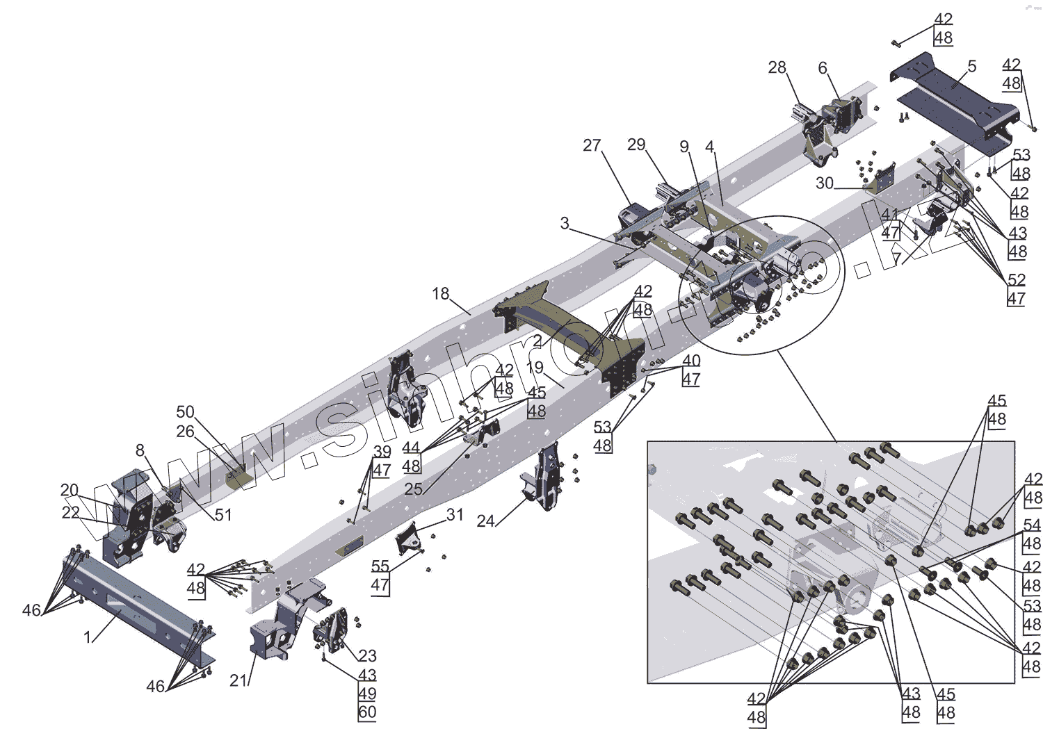 Каталог запасных частей к технике: МАЗ-5550V3 (V5). Рама 5550V5-2801002-000
