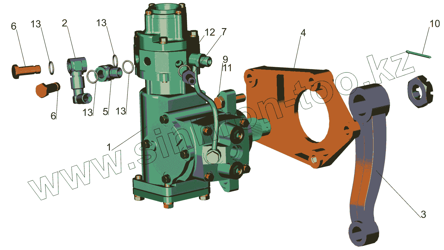 Каталог запасных частей к технике: МАЗ-5550V3 (V5). Рулевой механизм с кронштейном 6418-3400006