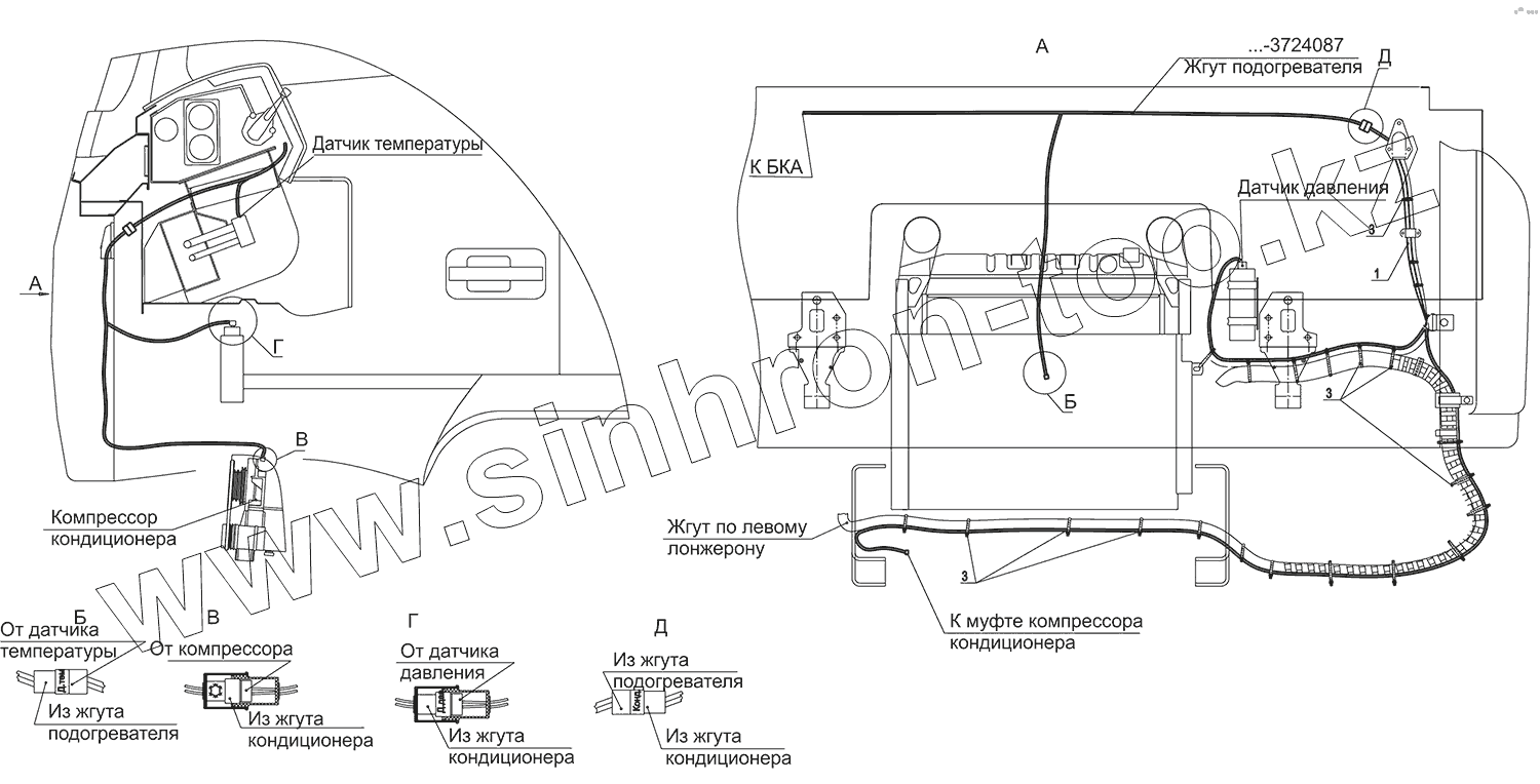 Каталог запасных частей к технике: МАЗ-5550V3 (V5). Установка электрооборудования кондиционера 544069-3700092