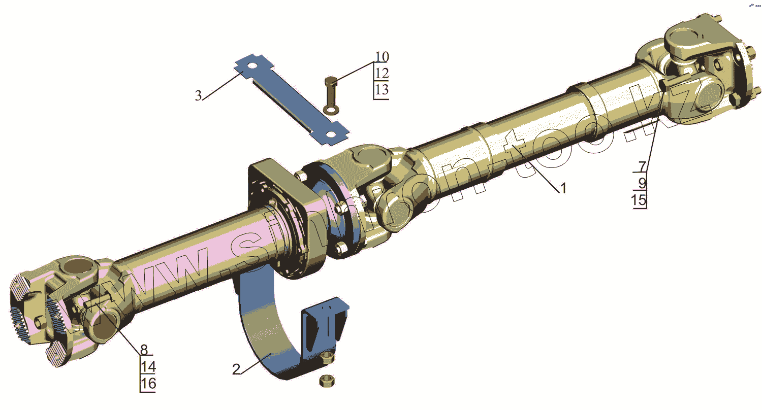 Каталог запасных частей к технике: МАЗ-5550V3 (V5). Установка карданной передачи 5550V3-2200000-000