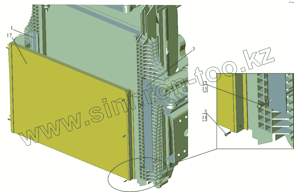 Каталог запасных частей к технике: МАЗ-5550V3 (V5). Установка конденсатора 4371V2-8100034-000