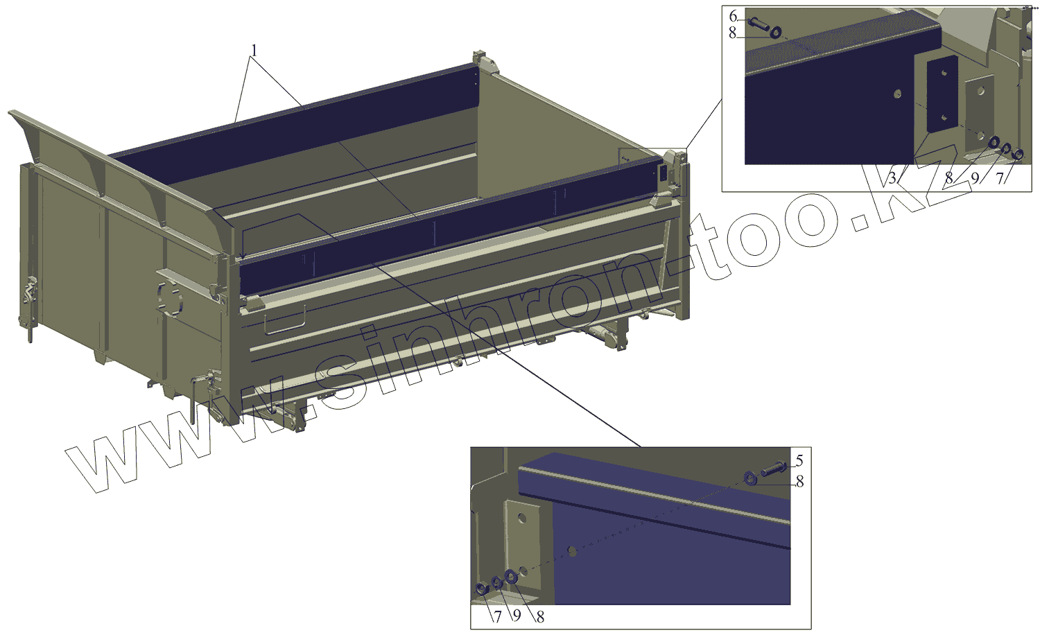 Каталог запасных частей к технике: МАЗ-5550V3 (V5). Установка надставных бортов 5550B5-8500012