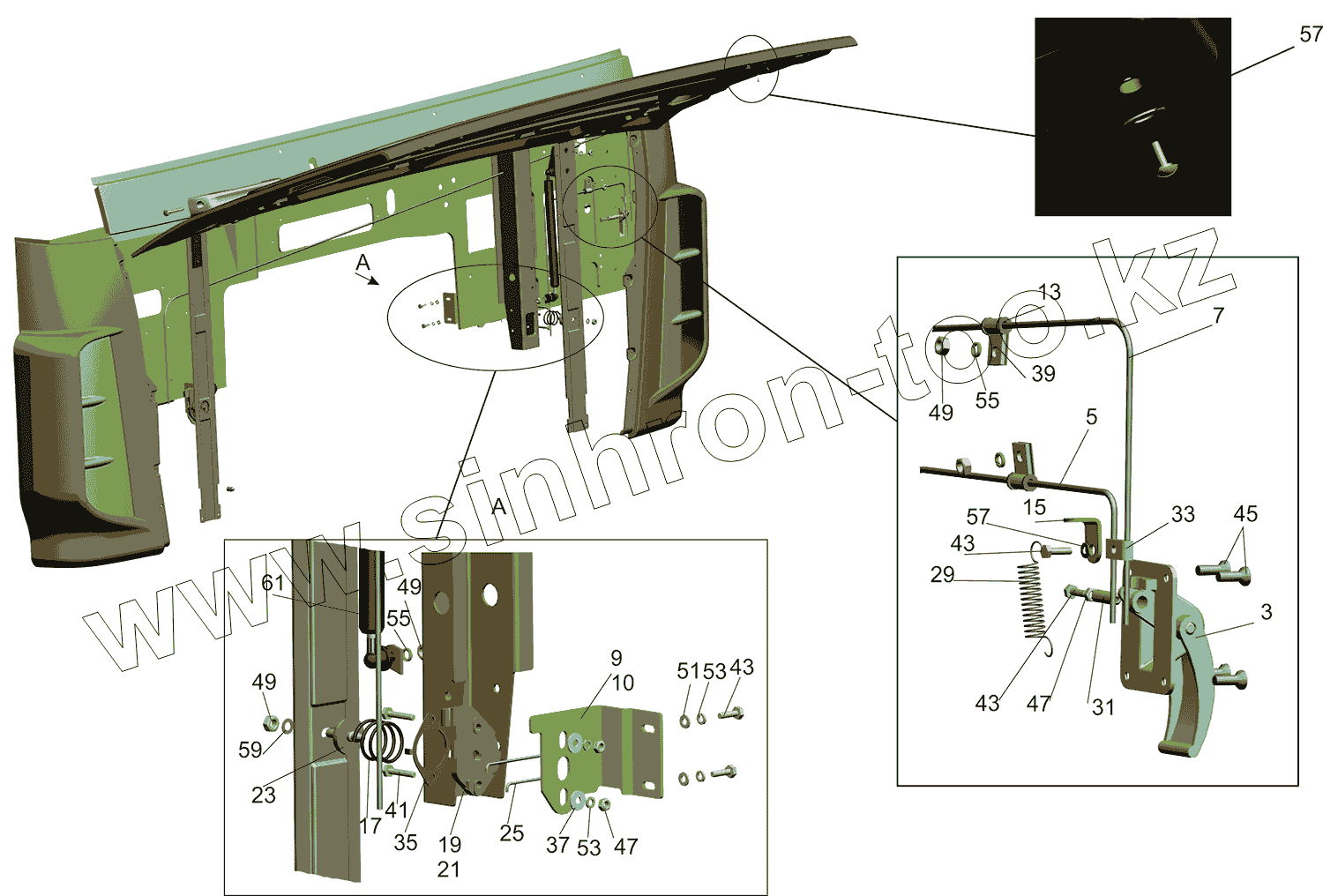 Каталог запасных частей к технике: МАЗ-5550V3 (V5). Установка облицовки передка 6431-8400018-000