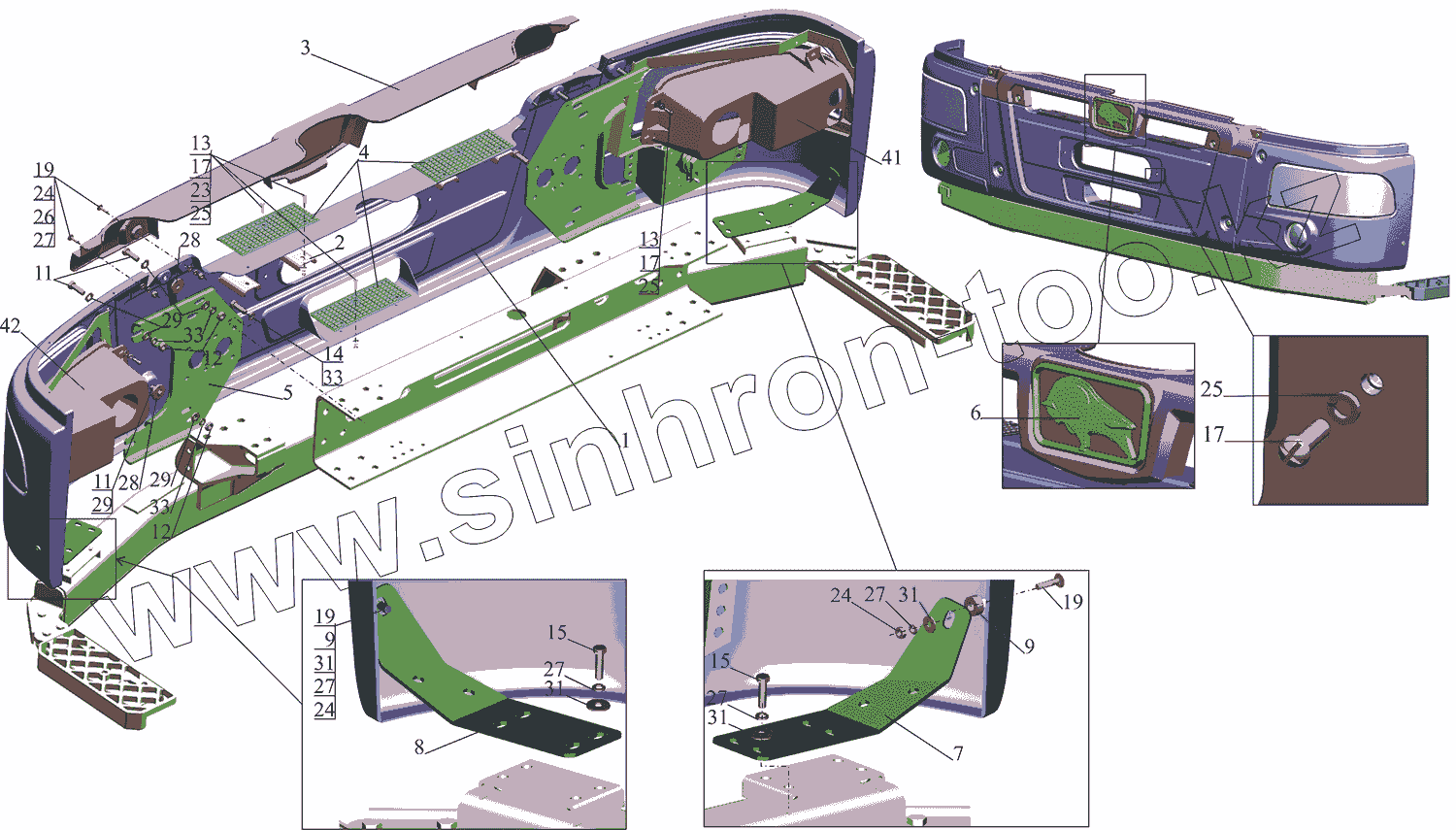 Каталог запасных частей к технике: МАЗ-5550V3 (V5). Установка переднего бампера 5340V4-2800003-030