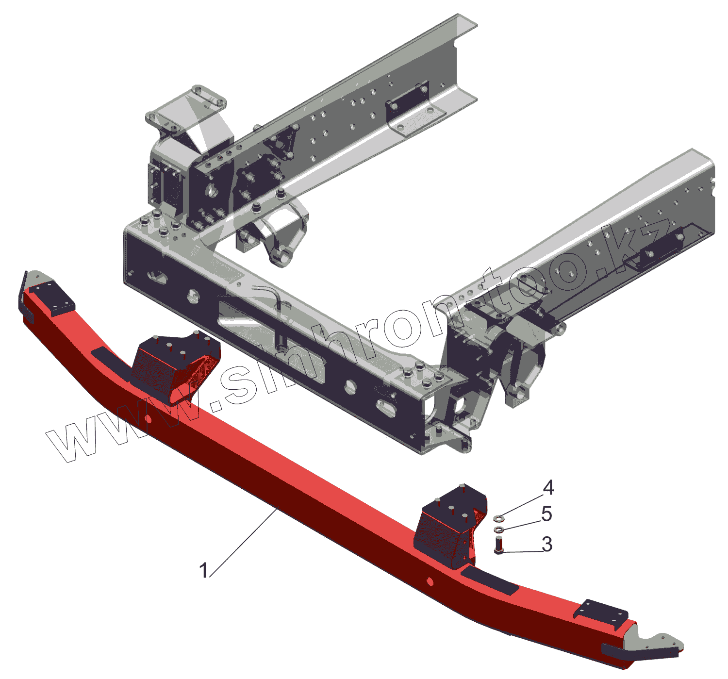 Каталог запасных частей к технике: МАЗ-5550V3 (V5). Установка переднего противоподкатного бруса 6430-2800030