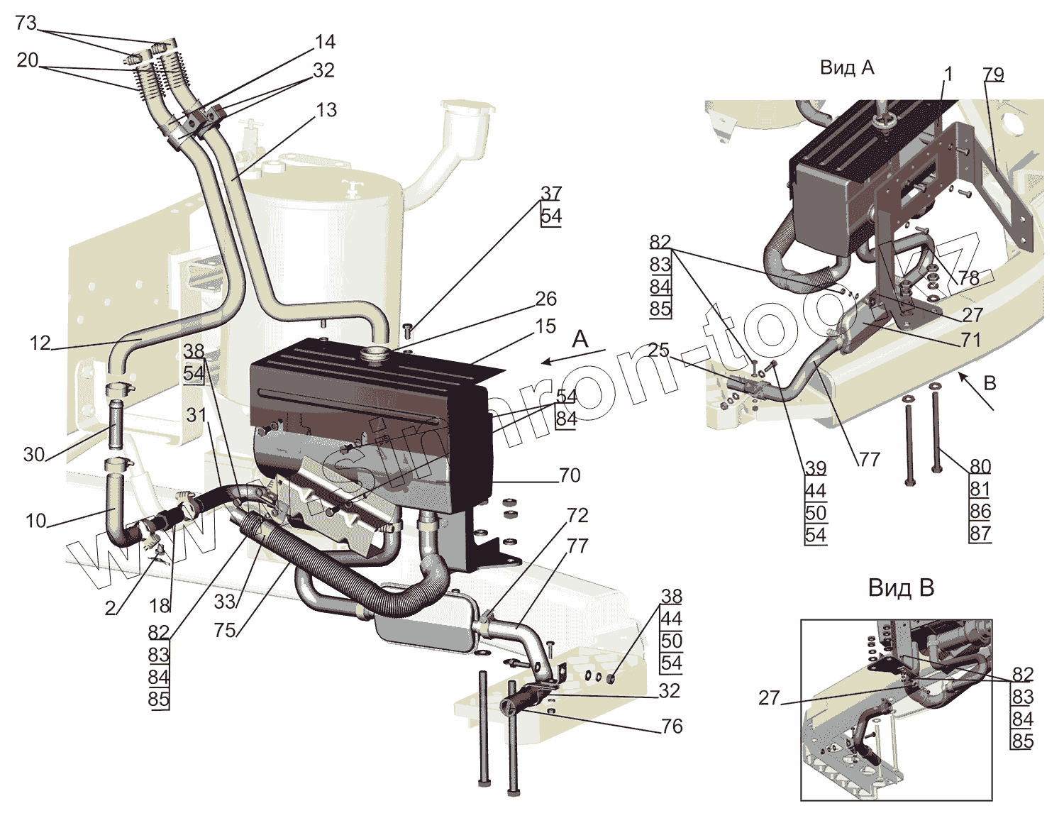 Каталог запасных частей к технике: МАЗ-5550V3 (V5). Установка подогревателя 555035-1015001-010