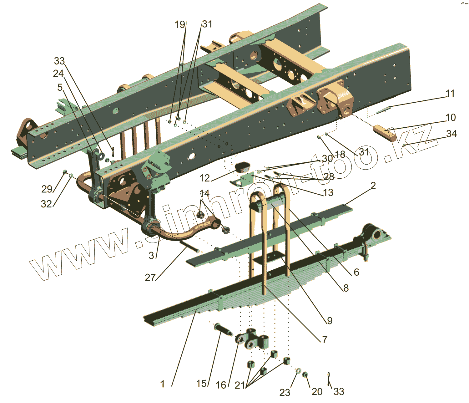Каталог запасных частей к технике: МАЗ-5550V3 (V5). Установка подвески задней 5550B5-2900002