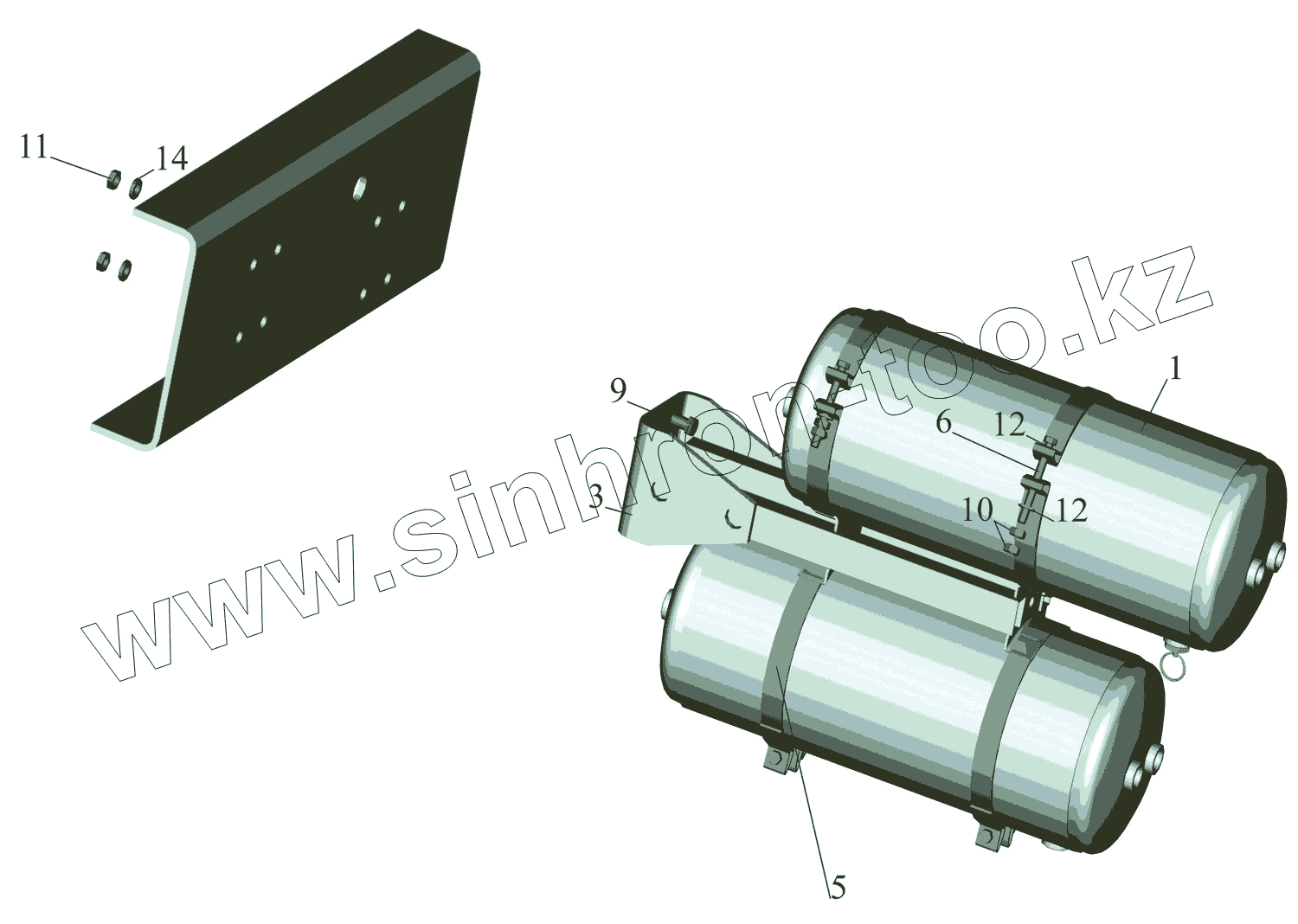 Каталог запасных частей к технике: МАЗ-5550V3 (V5). Установка ресиверов 650136-3513005