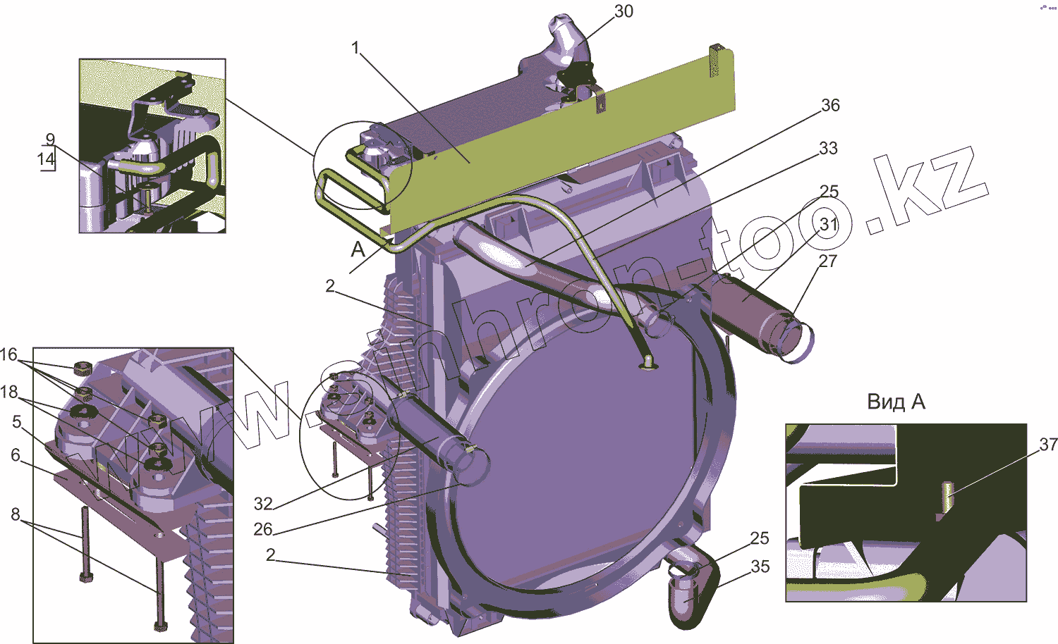 Каталог запасных частей к технике: МАЗ-5550V3 (V5). Установка системы охлаждения 5550V3-1300005-000