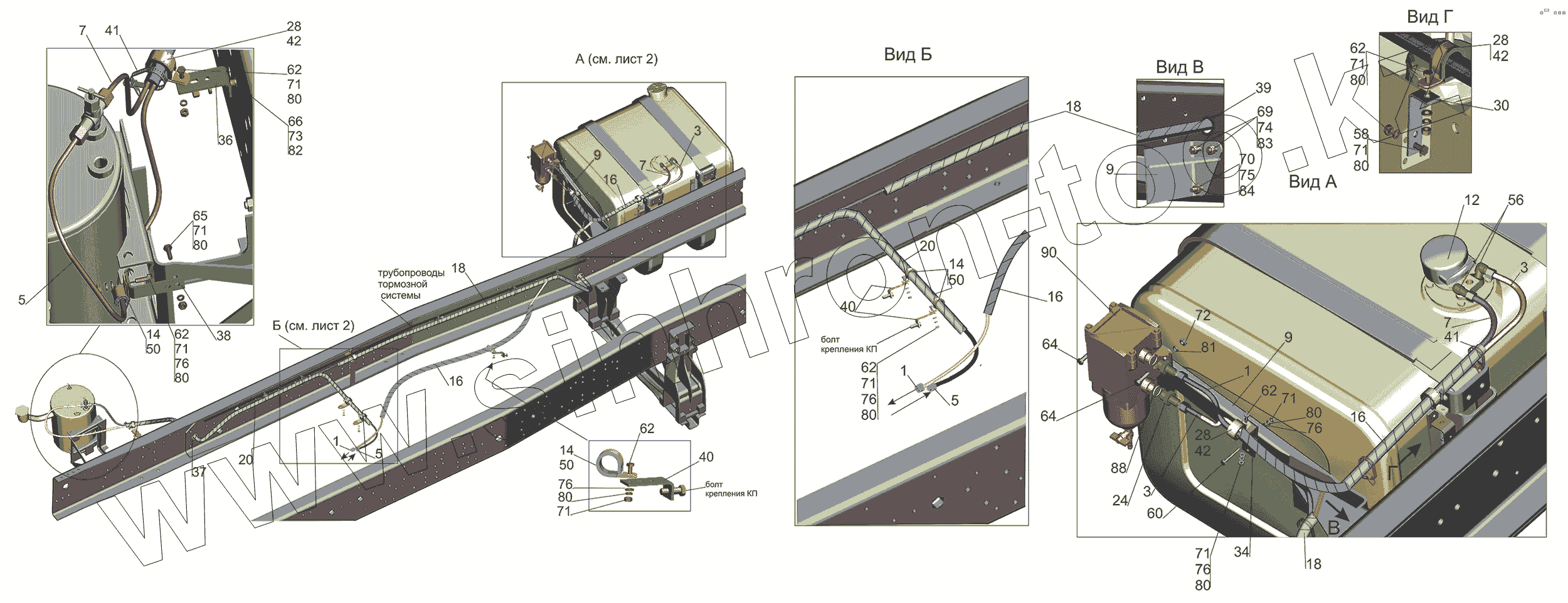 Каталог запасных частей к технике: МАЗ-5550V3 (V5). Установка топливопроводов 5550V5-1104002-000