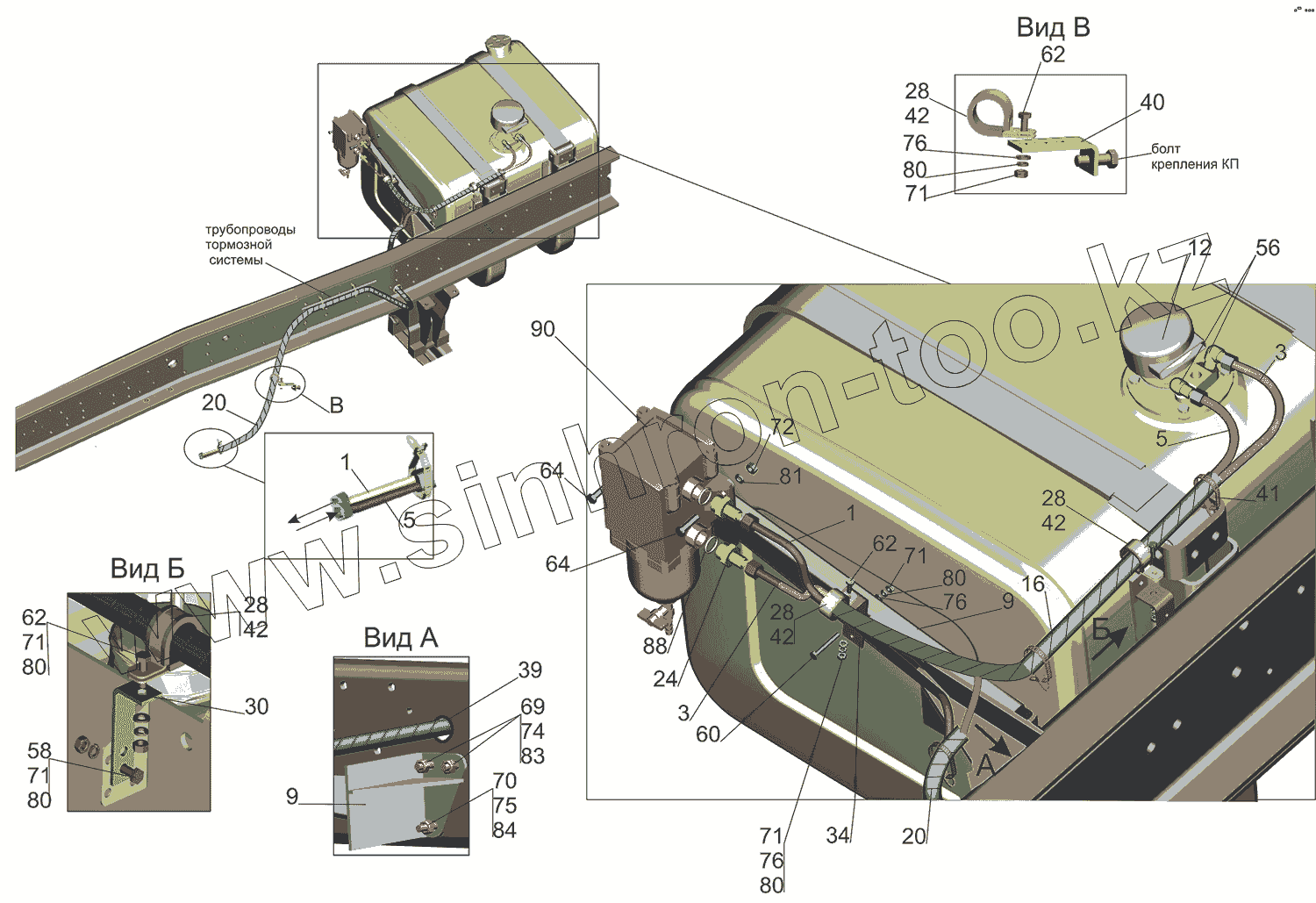 Каталог запасных частей к технике: МАЗ-5550V3 (V5). Установка топливопроводов 5550V5-1104002-010