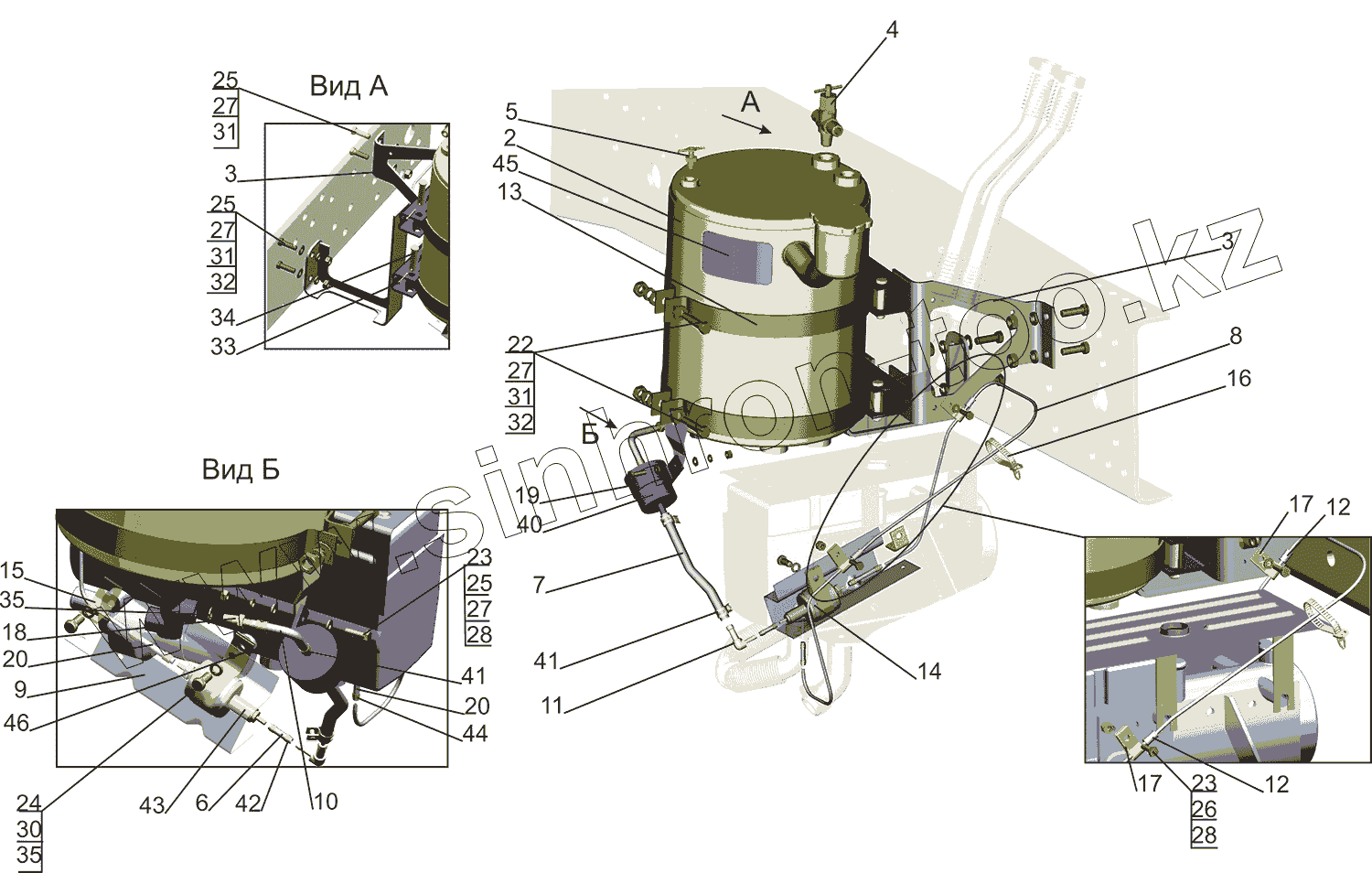 Каталог запасных частей к технике: МАЗ-5550V3 (V5). Установка топливопроводов подогревателя 643069-1015004-010