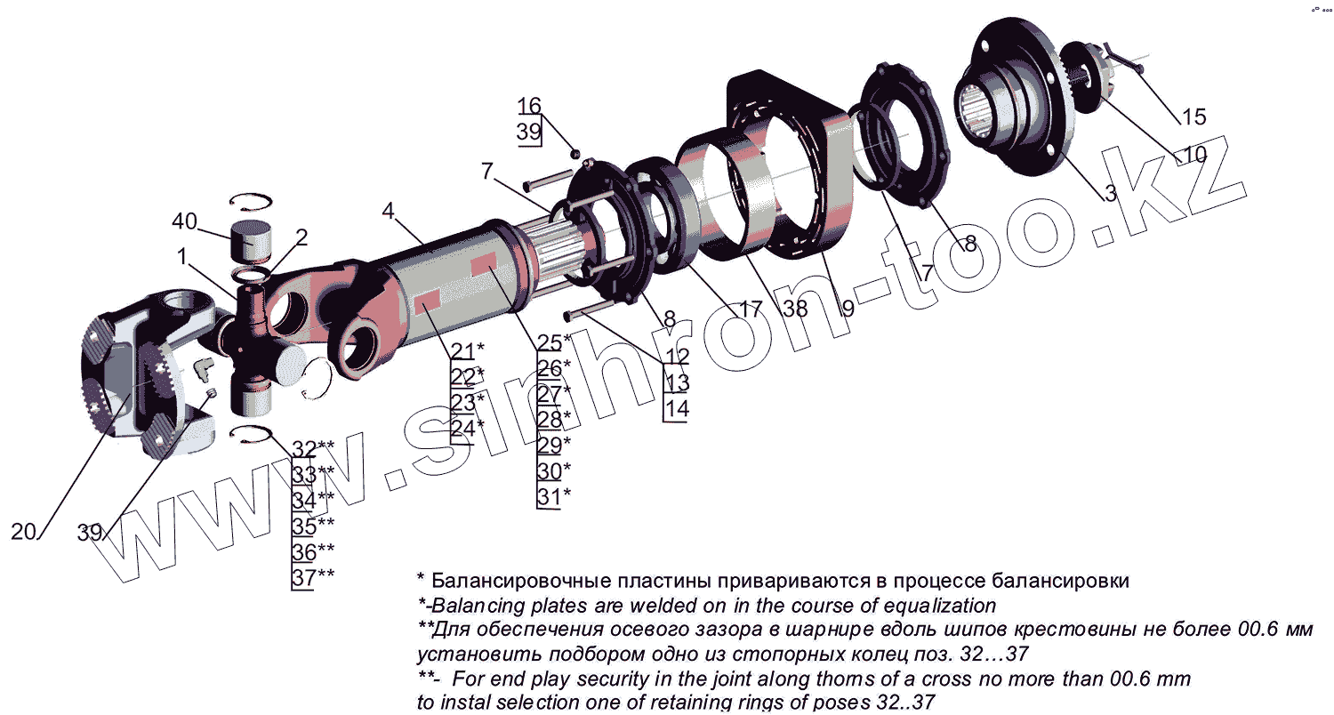 Каталог запасных частей к технике: МАЗ-5550V3 (V5). Вал карданный промежуточный 6312V5-2202010-000