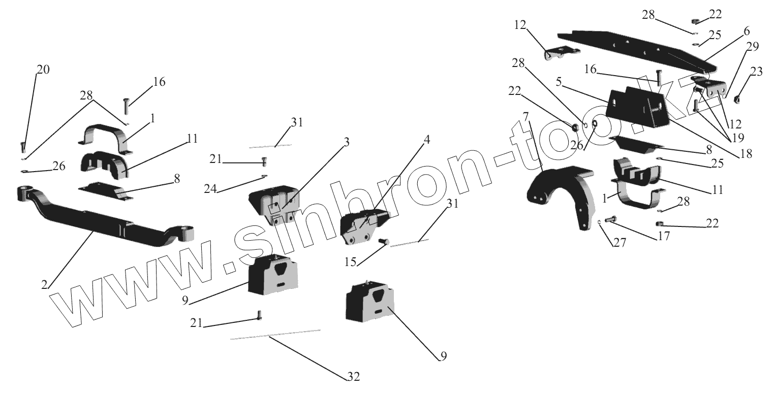 Каталог запасных частей к технике: МАЗ-555102, 5551А2. Крепление двигателя 555140-1001002-010