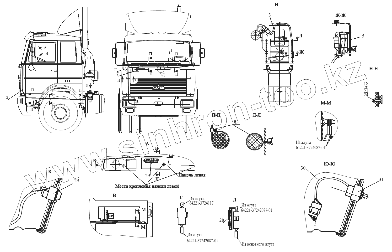 Каталог запасных частей к технике: МАЗ-555102, 5551А2. Установка электрооборудования подогревателя 64221-3700085