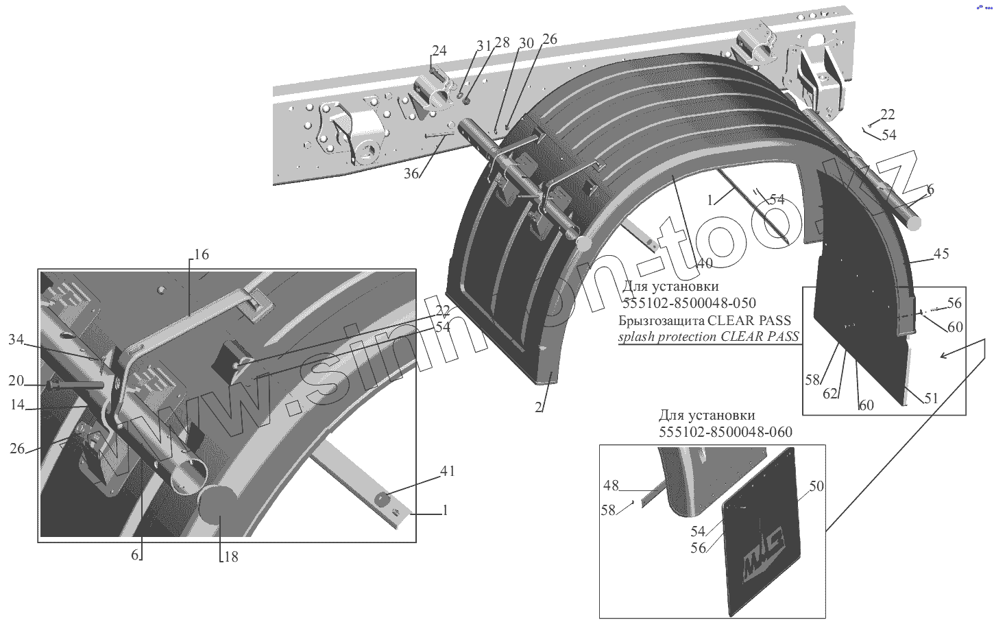 Каталог запасных частей к технике: МАЗ-555102, 5551А2. Установка крыльев 555102-8500048-050