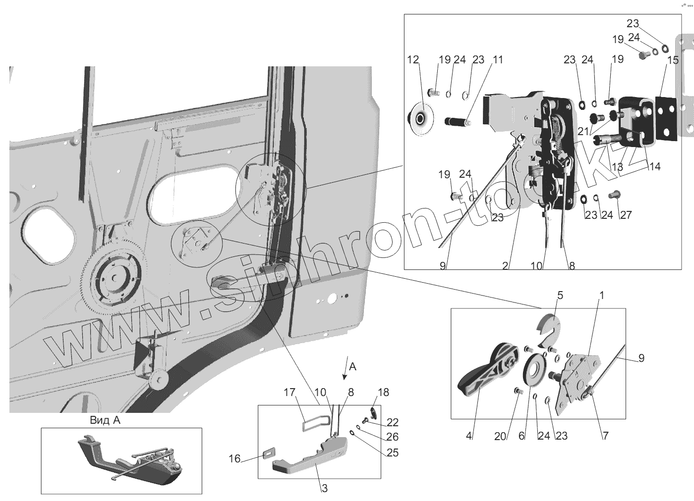 Каталог запасных частей к технике: МАЗ-555102, 5551А2. Установка наружной ручки и замка двери