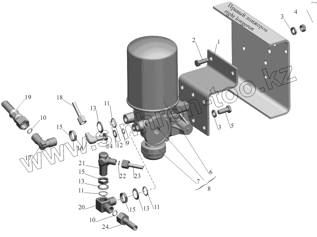 Каталог запасных частей к технике: МАЗ-555102, 5551А2. Установка осушителя воздуха 5551-3536004