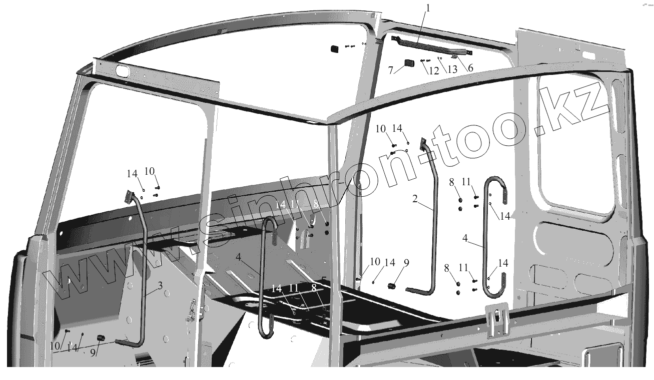 Каталог запасных частей к технике: МАЗ-555102, 5551А2. Установка поручней в кабине