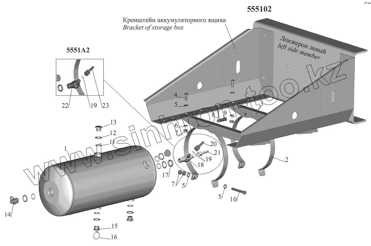 Каталог запасных частей к технике: МАЗ-555102, 5551А2. Установка ресивера 5551-3513005-10