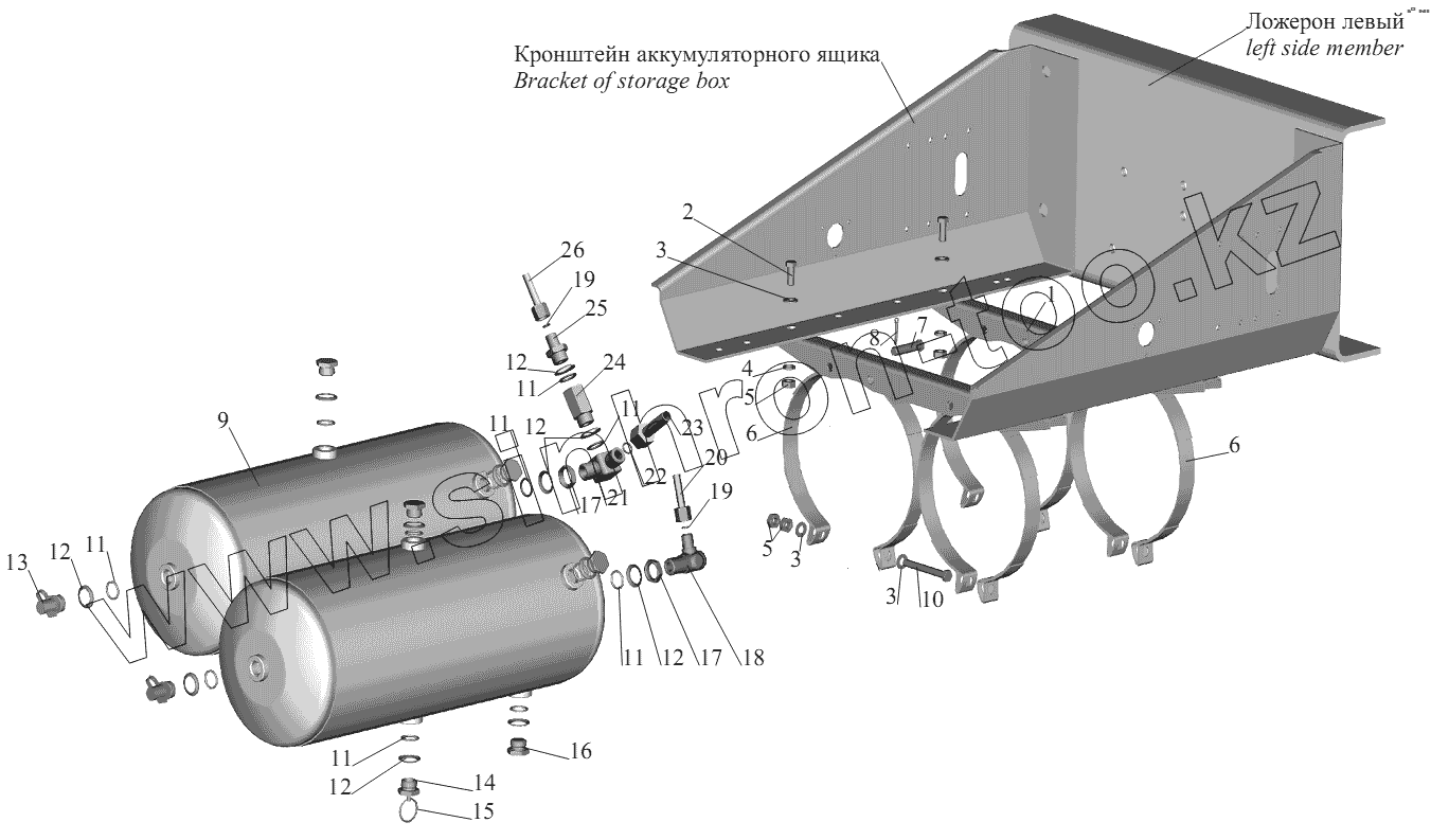 Каталог запасных частей к технике: МАЗ-555102, 5551А2. Установка ресиверов 555102-3513005