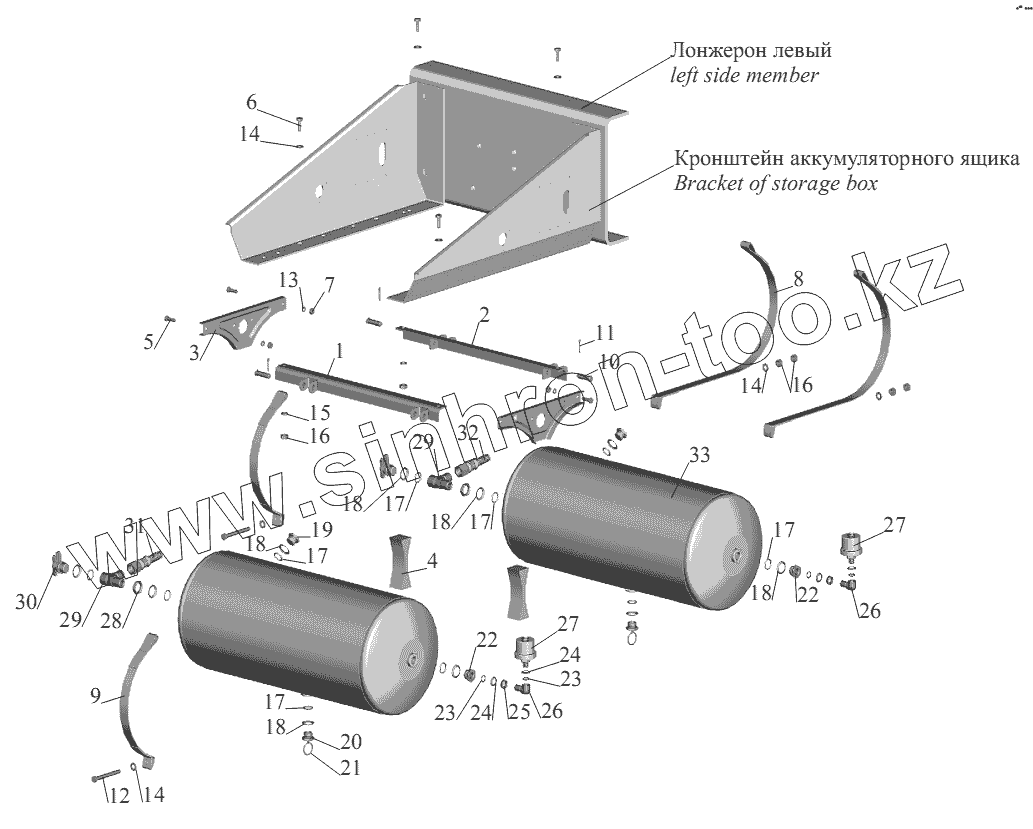 Каталог запасных частей к технике: МАЗ-555102, 5551А2. Установка ресиверов 64221-3513004