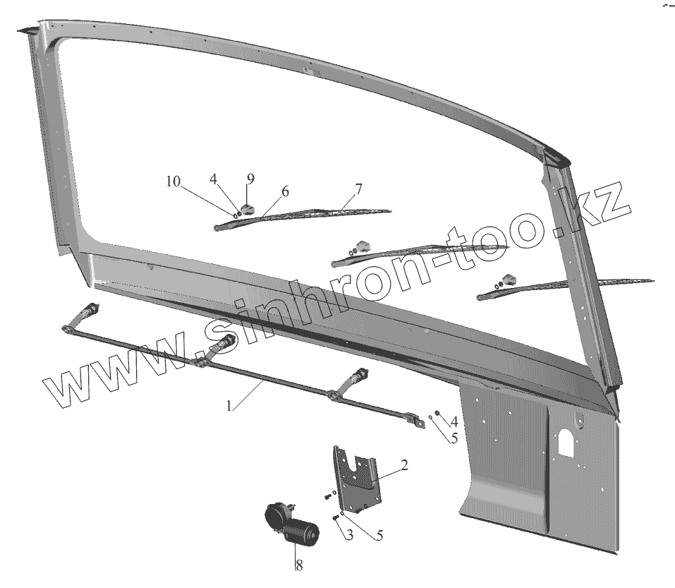 Каталог запасных частей к технике: МАЗ-555102, 5551А2. Установка стеклоочистителя 64221-3700041-010