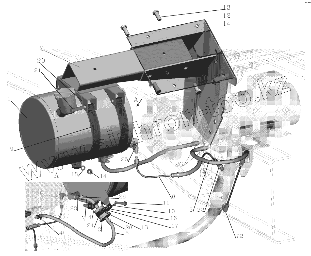 Каталог запасных частей к технике: МАЗ-555102, 5551А2. Установка топливопроводов подогревателя 64229-1015004-01