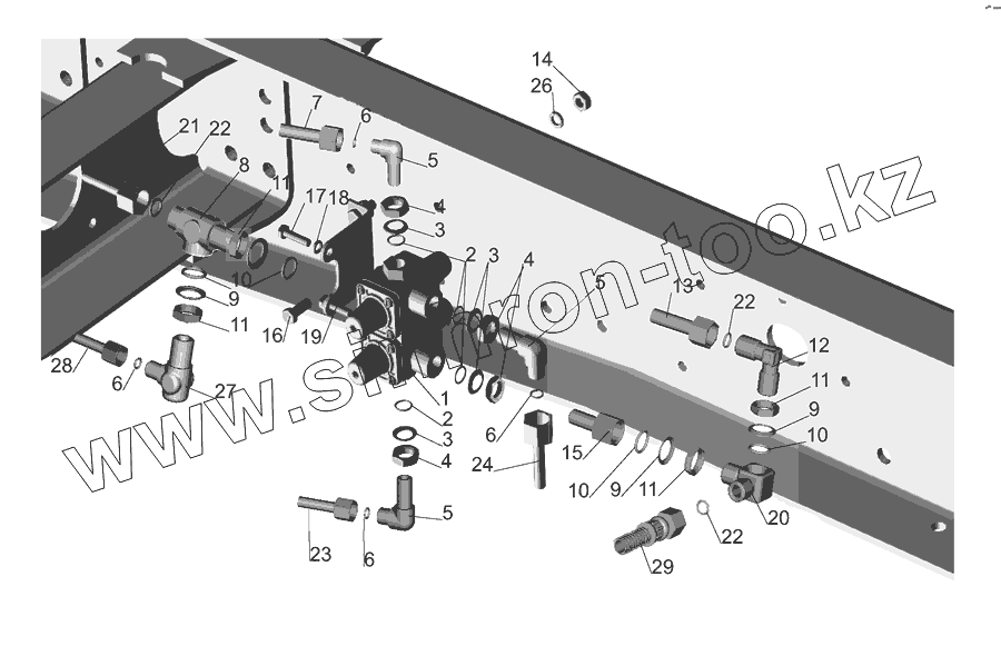 Каталог запасных частей к технике: МАЗ-555142. Крепление четырехконтурного клапана 5551-3515002