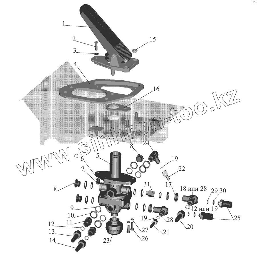 Каталог запасных частей к технике: МАЗ-555142. Крепление тормозного крана 64221-3514004-20