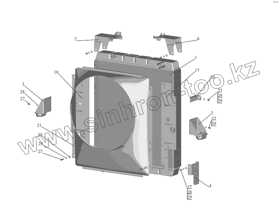 Каталог запасных частей к технике: МАЗ-555142. Радиатор с кожухом 555142-1301009-001
