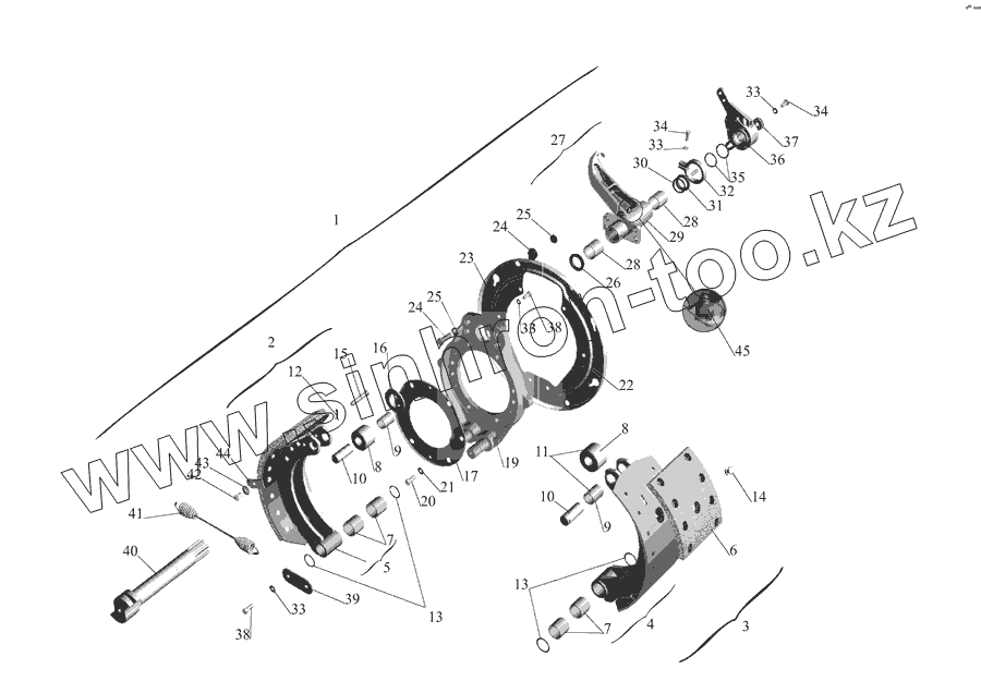 Каталог запасных частей к технике: МАЗ-555142. Тормозной механизм передних колес