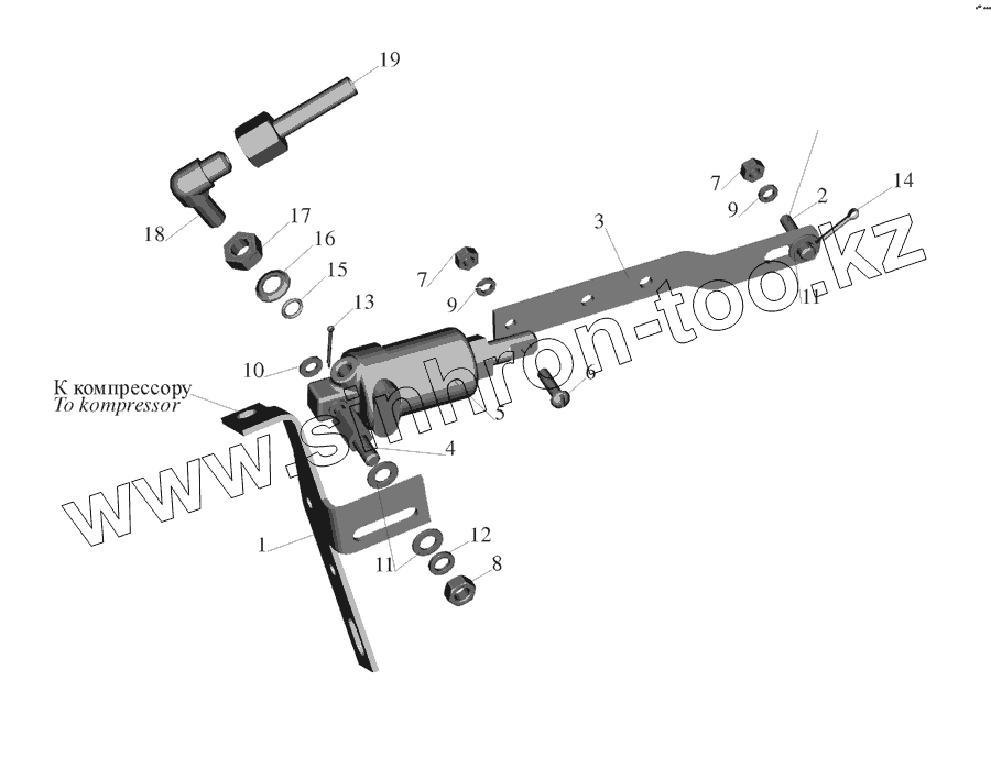 Каталог запасных частей к технике: МАЗ-555142. Цилиндр останова двигателя 555142-3570004-020